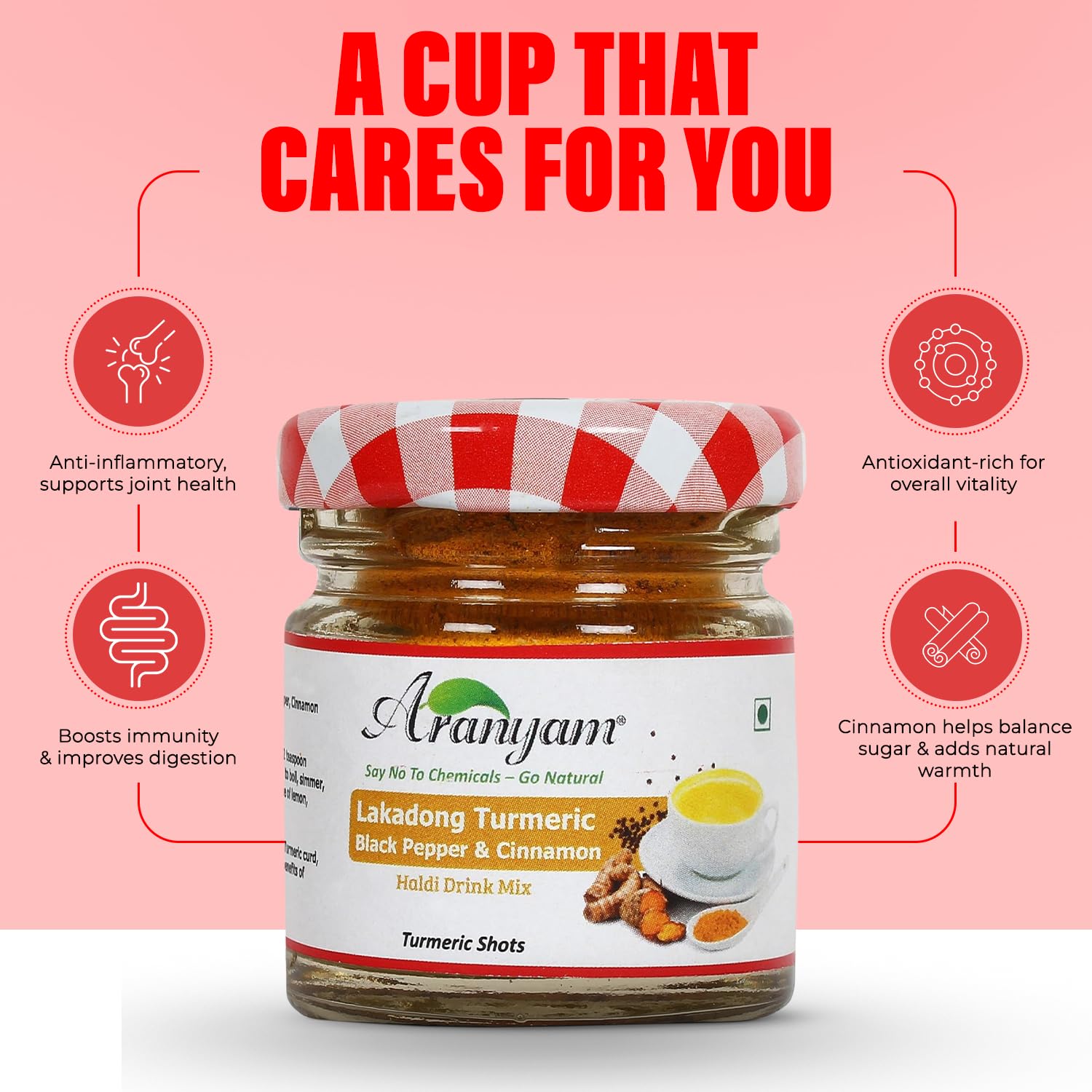 • A blend of curcumin rich (7-10%) Lakadong turmeric, black pepper and cinnamon, sourced from the North East